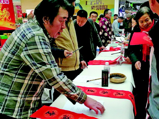 新春佳节到来之际,由高新区社会事业局联合舜华路办事处主办的高新区2017年冬春文化下乡书法家送福写春联活动在高新万达广场拉开帷幕。活动当天,来自省市知名书法家现场创作送出约500件福字和春联。