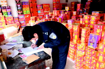 年关将近,非法储存经营烟花爆竹行为进入高发期,成武警方加大巡查力度,严厉打击烟花爆竹非法储存经营行为。1月7日上午,成武县公安局白浮图派出所民警在检查中发现位于吉祥街南段的某仓库内有大量烟花爆竹存放,民警迅即对此事开展调查,了解到该批烟花爆竹系该镇烟花爆竹经销商刘某所有。经现场清点,该仓库共储存烟花爆竹187箱,刘某的行为已涉嫌非法储存烟花爆竹。