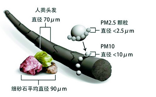 PM2.5由于小尺寸和大比表面积,容易吸附空气中多种其它污染物。