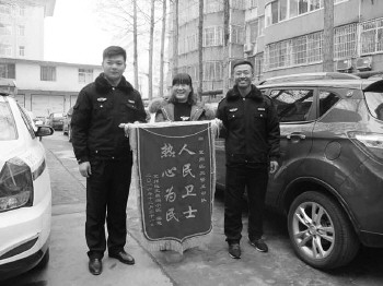 很快车胎便换好,接受帮助后的栾女士非常感动,于1月14日向帮助她的好心辅警送上一面写着“人民卫士,热心为民”的锦旗表示感激。