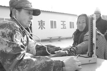 近日,驻烟台某部官兵在冬季野营拉练路上来到莱阳市东玉泉庄村慰问困难群众,为村民送去了大米、面粉、花生油等慰问品,送去一份温暖。据介绍,该部军医还为村民测血压检查身体。