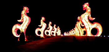 本届花灯节内容丰富、题材广泛、表现形式和手法多种多样,有体现民俗文化的《恭贺鸡年》、《金鸡送福》。有洋溢春节气氛的《福临门》《创意礼盒》,还有彰显童真童趣的《南瓜车》、《冰雪奇缘》、《憨态可掬》,浪漫唯美的《爱情宣言》、《光影漫步》,光听名字就已经充满诗意了,现场观看更是效果震撼,奇形幻影,大放异彩。漫步在彩灯海洋之中,光怪陆离,如梦如幻。所有灯组会在1月20日全部亮相。