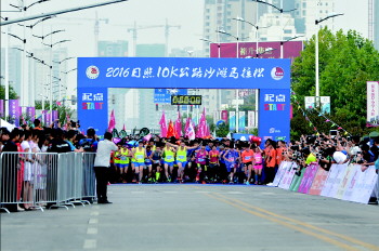 志愿者助力日照10K公路沙滩马拉松。