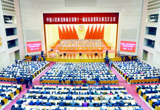 2月5日,中国人民政治协商会议第十一届山东省委员会第五次会议在山东会堂隆重开幕。 大众日报记者 卢鹏 摄