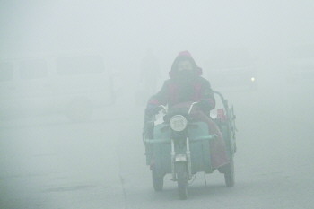 市民在雾中穿行。 记者 李军 摄
