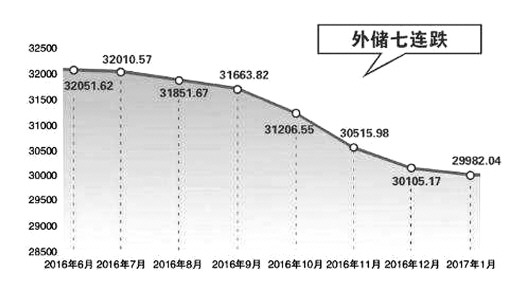 央行发布的数据显示,2017年1月,我国外汇储备规模较2016年12月底下降123亿美元,连续7个月“缩水”。
