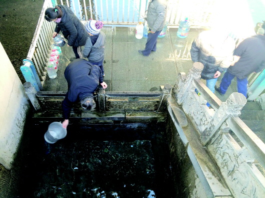 早晨济南气温在冰点以下,迎仙泉的台阶上结了一层薄冰,但是来此打水的市民络绎不绝,尤其是老年人居多。“我每天都来打水,都喝习惯了,泡茶味道比纯净水要好。”来此打水的范先生说。