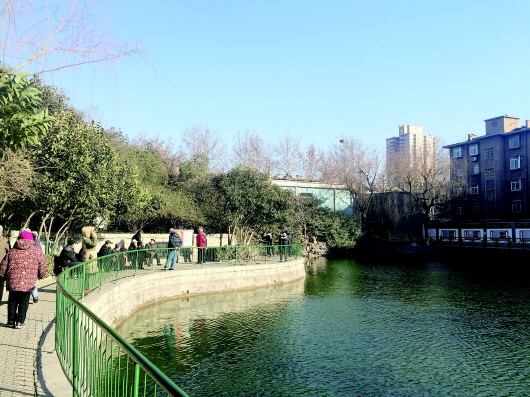 当天下午,记者又来到天桥区无影潭西路的无影潭公园。当日济南天朗气清,无影潭内碧波粼粼,在居住地附近有一处风景如此秀丽的公园也是居民一大乐事。记者在公园内看到,来此踢毽子、练武术、打牌、下象棋、健身的老人很多,公园内打扫得非常干净,潭上还有游船收集垃圾。