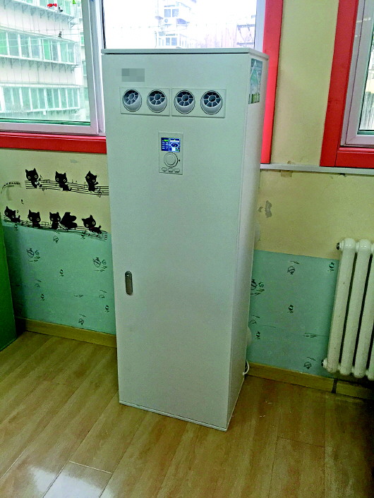 市中区某幼儿园的一间教室里安装的空气净化系统。