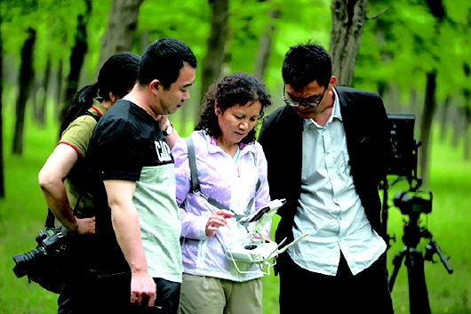 摄制组在孤岛槐花林取景。