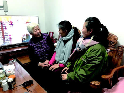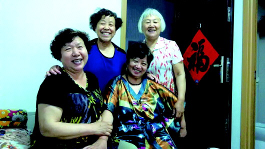 杨慧英(右一)和邻居已经成了姐妹,经常在一起聚会。