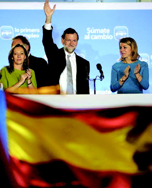 2016年6月26日,在西班牙首都马德里,拉霍伊(右)领导的西班牙人民党在议会选举中得票率第一,但未取得绝对多数地位。(资料片)