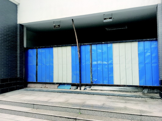 泉城旺角正门被用铁皮围挡住。