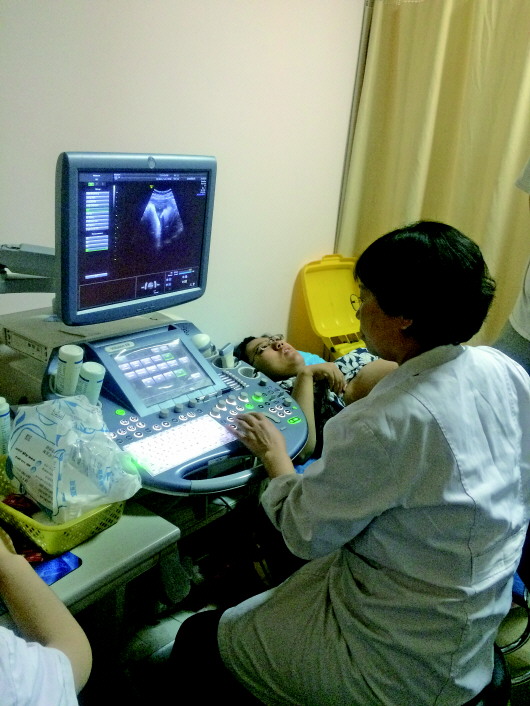◥全面二孩以来,彩超室忙了起来。 本报记者 王小蒙 摄