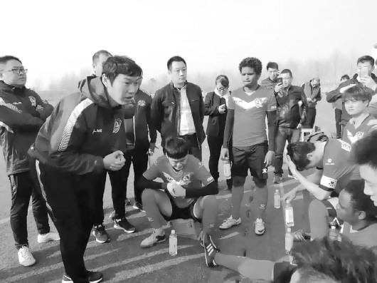 宋黎辉(左二)担任山东恒特队的主教练,继续为足球事业发光发热。