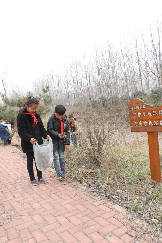 28日,薛城区南临城小学学生在蟠龙河附近捡拾垃圾。该校开展了以“关爱自然、保护环境”为主题教育活动,引导学生捡拾垃圾传递文明,让这个春天变得更美丽。 (通讯员 刘萍 摄影报道)
