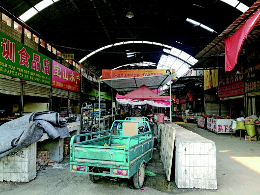 农贸市场棚顶已破旧不堪。
