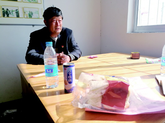 在大河北村村委办公室里,记者看到桌子上一片狼藉,吃剩的面包、喝剩的饮料还没来得及收拾。