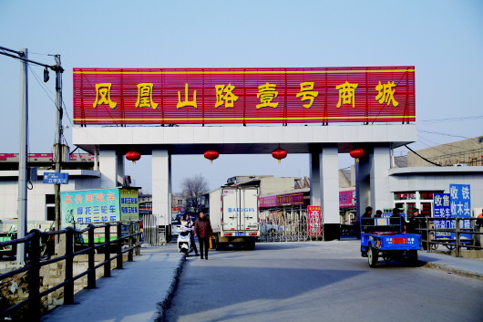 凤凰山路1号是济南第一棉纺织厂(国棉一厂)所在地。如今崭新的红色大牌子“凤凰山路壹号商城”,让人很难和当年的老厂区联系起来。300多亩的老厂区早就变成了喧嚣的旧货市场,厂区内道路两侧门头房一字排开,各式桌椅家具堆积在店门口。只有外墙上“精纺细纺、用户至上”的标语还保留着往日的印记。