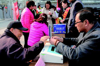 3月18日上午,本报联合潍坊市计量所开展计量惠民进社区活动,本次活动来到潍城区曹家巷社区居委会小广场,共为社区居民检测血压计等93台件,接受居民现场咨询百余人次。 本报记者 李晓东 摄影报道