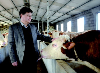 在牛犊住进养牛场的第三天上午,刘建新却怎么也高兴不起来。新买来的20多头牛犊开始拉肚子,并且多数牛犊已经一天不吃不喝。这可把刘建新吓坏了,“这些牛犊是村子的希望,出现了意外怎么给大家交代?”他立即从泗水县畜牧局请来技术人员,通过诊断确定患病牛犊为水土不服,需要口服些药物后静待情况。“刘书记挨个为牛犊喂药,仔细观察着每头牛的情况,整整两夜守在牛棚没有合眼。”养牛场饲养员乔有玉说。幸好几天后牛犊一个个康复,刘建新悬着的心终于放下了。