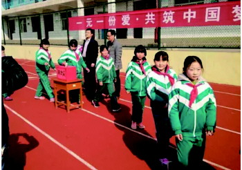 爱心活动 沂源县张家坡中心学校举行“一元一份爱,共筑中国梦”活动。旨在展现学生的爱心与善心,培养学生关爱他人的优良品质。 (王均升)