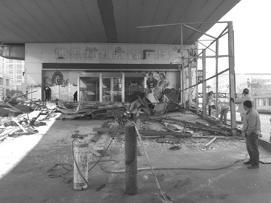 顺河高架下羽绒服广场正在拆除。 本报记者 张阿凤 摄
