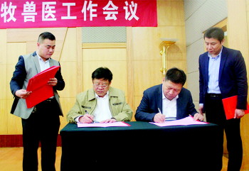 副市长任晓旺与各分管县市区长签订重大动物疫病防控责任状。 记者 杨淑君 摄