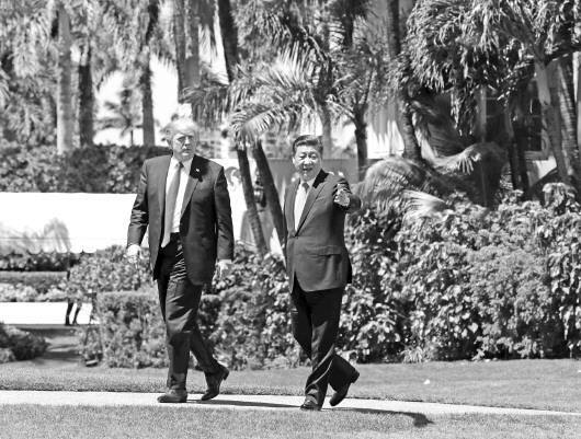 会晤后,习近平同特朗普到秀丽宜人的海湖庄园中散步。 新华社发