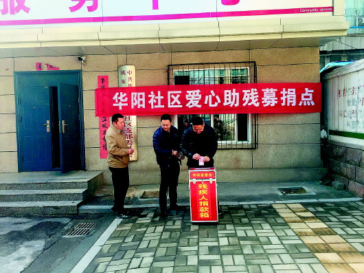 本报讯(记者 张九龙 通讯员 马宪梦) 根据济南市残疾人福利基金会的要求,近日,华阳社区开展爱心助残募捐活动,由社区居委会发出倡议,希望大家慷慨解囊,奉献出一份爱心。
