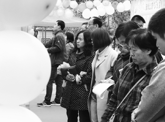 虽然相亲会已接近尾声,但在信息展示区,仍有不少市民拿着纸笔,来回记录,其中不乏为儿女寻找另一半的父母们。陈女士今年57岁,她手中的小本子上密密麻麻地记录着25岁左右女孩的信息。“多记一些,拿回去给儿子看看。”陈女士得知相亲大会要结束了,凡是符合她预期要求的女孩信息她都记录在笔记本上,然后再仔细分析。