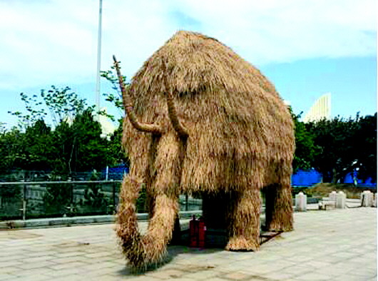 草雕艺术节上的巨型史前猛犸大象。