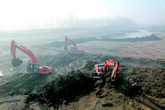 工作人员正在对徒骇河河道进行整修。