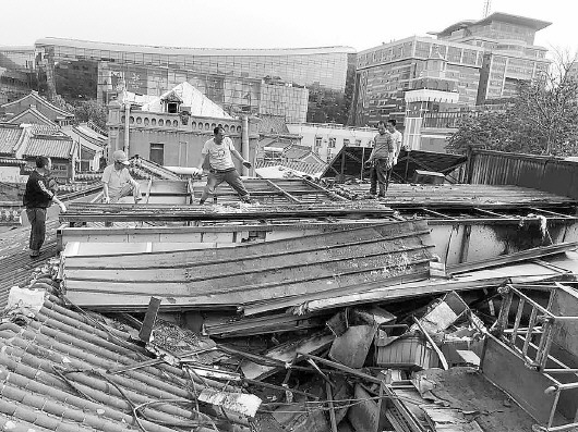 芙蓉街楼顶拆除现场。 泉城路街道办供图