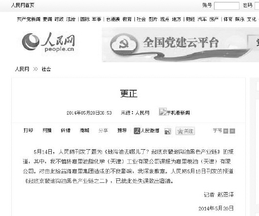 2014年5月20日人民网发表更正声明
