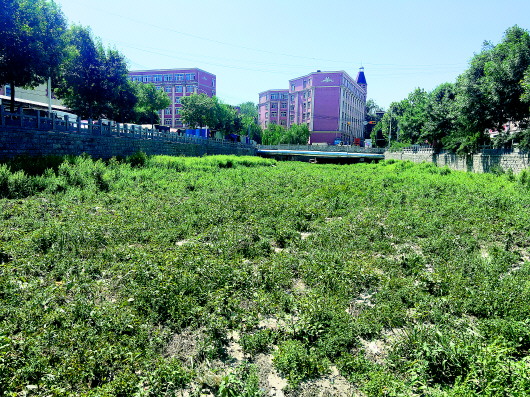 16日,记者来到七里堡综合批发市场西侧窑头大沟,此段河道南至七里堡路,北至铁路桥。记者看到,在这200来米的河道中杂草丛生,部分河段完全被杂草覆盖。