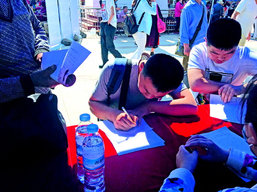应聘者填写简历。 本报记者 孙业文 摄