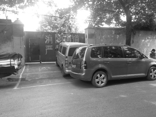 八里洼大集取缔后,路两边停了不少私家车,有的车还堵在了消防通道上。 本报记者 孙业文 摄