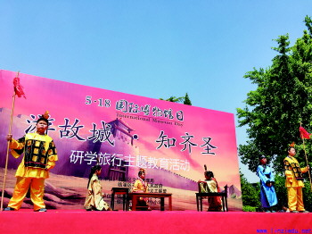 为进一步传承、弘扬齐文化精神,增强学生爱护文物、保护文物的意识,在5.18国际博物馆日,临淄区齐都镇中心小学举行了“游故都 知齐圣”为主题的研学旅游活动。同学们依次参观了桓公台、城墙遗址、晏婴冢、十号遗迹等一系列古迹景点,感受古代齐国的繁荣昌盛。并在原齐国历史博物馆进行了精彩的齐文化艺术表演:齐国诗歌诵读、齐文化情景剧、齐国成语故事等节目。 胡刚 摄影报道