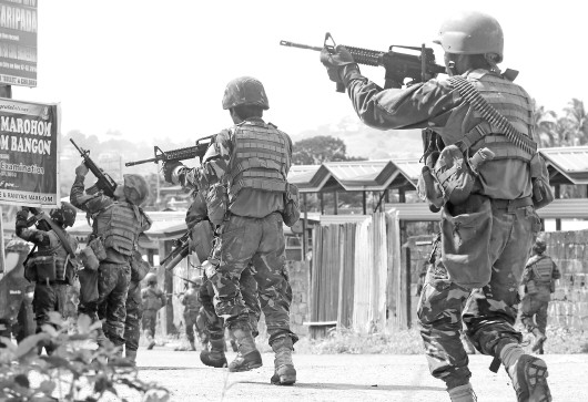 菲律宾军警与“穆特组织”等反政府武装25日在菲南部马拉维市的交战继续。双方23日下午开战以来,已有至少21人丧生。24日晚,“伊斯兰国”宣称为“穆特组织”在马拉维市制造的混乱负责。在中东被削弱的“伊斯兰国”必定加紧与东南亚的极端组织“合体”,大批逃散的恐怖分子可能重返东南亚,冲击当地的安全形势。