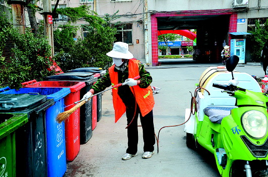 夏季到来,正是蚊虫大量繁殖的季节。为有效防控虫媒传染,保障市民身体健康,区环卫中心强化打药消毒,助推全国文明城市创建。区环卫中心按照“一车一线、分片包干、责任到人”的原则,对主次道路附近、垃圾收集点、集贸市场等的生活垃圾桶进行每日清洗、打药消毒。针对垃圾产生量大的位置,专门调集高压清洗车,每天至少一次对箱体和底座高压冲刷。 本报记者 支倩倩 通讯员 程若男 摄
