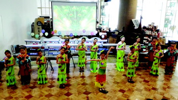 吉林路小学的孩子们表演戏剧。