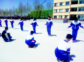 沂源县鲁村中学举行了初一、初二级学生跳绳比赛。