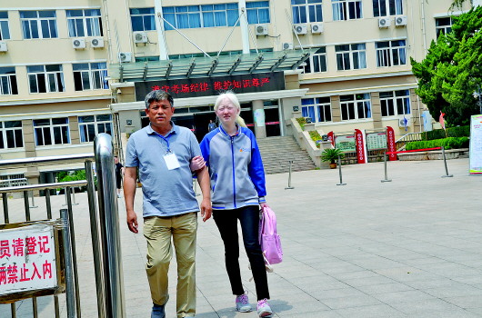 老宋的女儿宋速军是青岛盲校的一名高三学生,也是今年青岛唯一一名参加高考的盲生。宋速军使用的是4号字体加粗的汉文考卷,考场还专门为她配备了放大镜和电子助视器。每个科目的考试时间比正常时间延长30%。