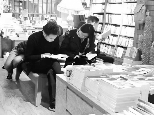合肥新华书店三孝口店是今年山东卷作文中提到的书店的原型。图为在书店里,不少读者在认真读书。(受访者供图)