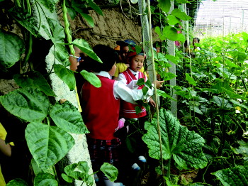 近日,沂源县鲁村镇中心幼儿园组织大班幼儿走进蔬菜大棚示范基地,亲身感受采摘过程,体验收获乐趣。(唐家花)