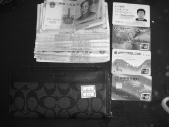 出租车司机王亮在车内捡到的钱包,内有2000元左右的现金和身份证、银行卡等。