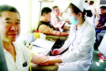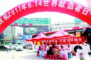 6月14日世界献血日,城区设四个采血点,众多爱心市民踊跃献血。