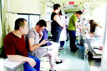 ▲在城区一处献血点,不断有市民来献血。