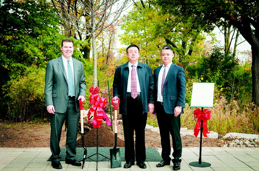 去年,西王食品并购加拿大一家保健品公司。左二为西王集团董事长王勇。